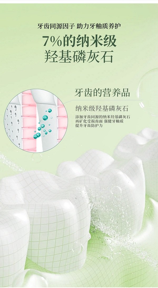🌟【三维焕白坚固牙釉】7%纳米羟基磷灰石帮助健康牙釉质,植酸钠+溶菌酶+烟酰胺三维净白,水合硅石+沸石温和去渍提亮