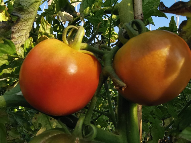 对于番茄的病虫害防控,首先是建立生态平衡的生物多样性环境及培养健康的土壤,其次是采用自制的石硫合剂、经有机评估过的中药提取物及微生物菌等防治病害。全程为物理生物防控,不使用有机农业不允许的任何农药。