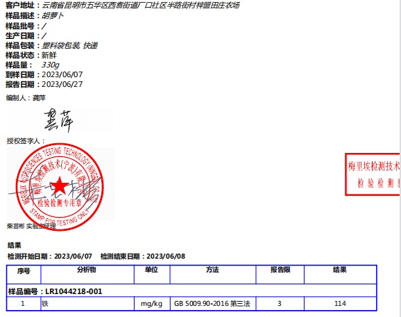 高原红土地种植,样品铁含量比普通胡萝卜高38倍
