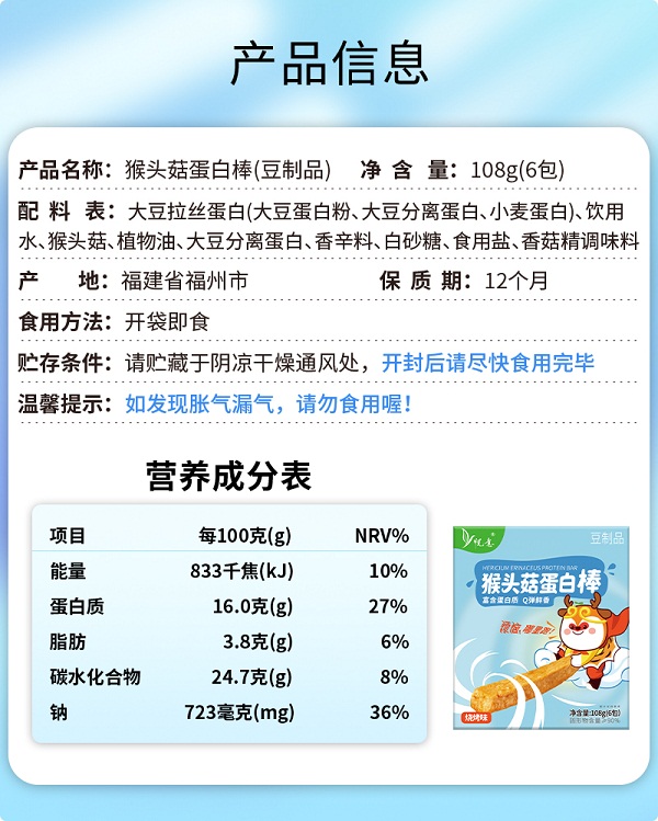 品名:悦意猴头菇蛋白棒