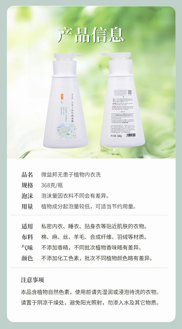 微益邦无患子植物内衣洗1瓶(368ml /瓶)