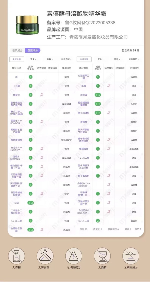 品名:素僖酵母溶胞物精华霜