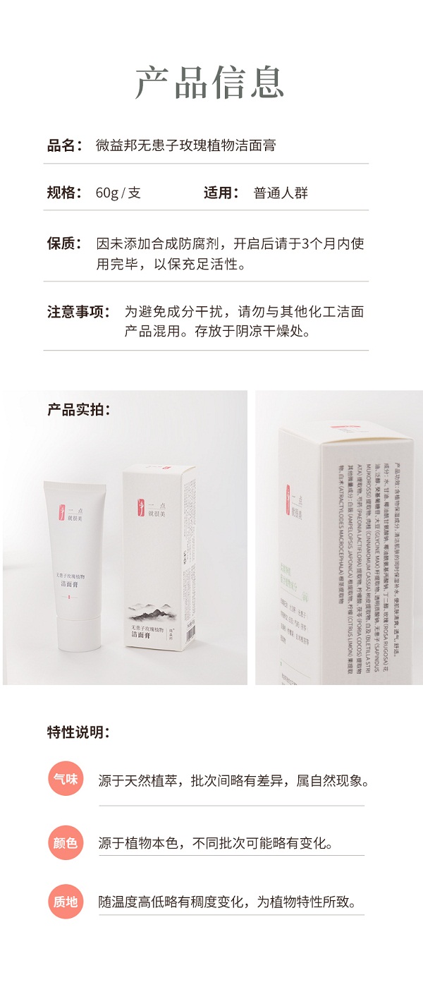 微益邦无患子玫瑰洁面膏2支(2*60g)