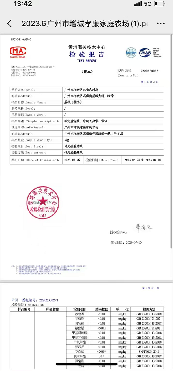 随机抽检荔枝, 通过厦门大学441项农残检测, 441项农残都未检测出!