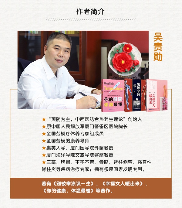 在医疗领域深耕多年的吴贵勋,亲眼目睹了科技进步带来的医疗水平提升,同时也深刻感受到了现代生活中人们健康问题的日益严峻。他意识到,尽管医疗技术日新月异,但面对层出不穷的疾病,仅仅依靠治疗是远远不够的。健康,应当从预防开始,从生活的点滴做起,尤其是从饮食这一源头抓起。于是,他拿起笔杆,化身为作家,通过《别被寒凉误一生》、《幸福女人暖出来》、《你的健康,体温最懂》、《家庭食养手册》等著作,向大众普及健康养生知识,倡导健康的生活方式。