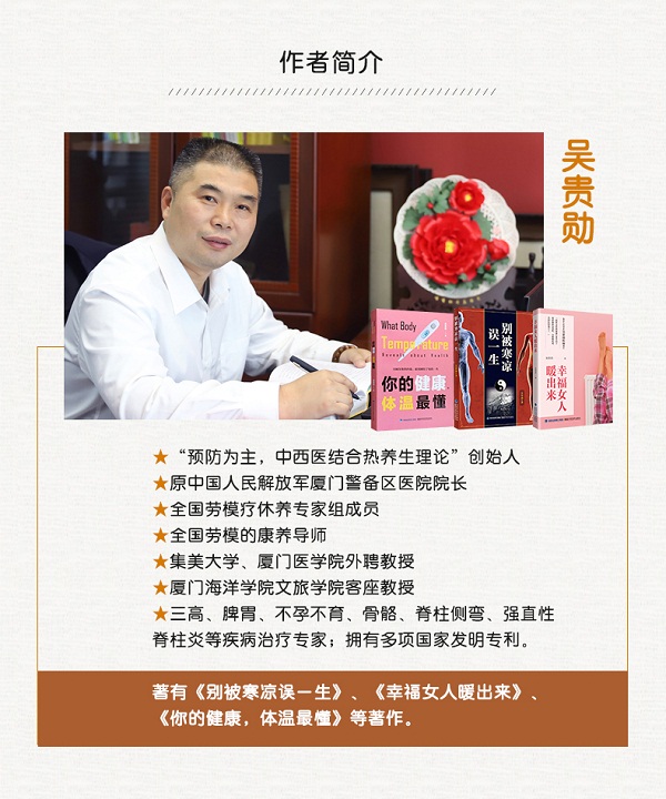 在医疗领域深耕多年的吴贵勋,亲眼目睹了科技进步带来的医疗水平提升,同时也深刻感受到了现代生活中人们健康问题的日益严峻。他意识到,尽管医疗技术日新月异,但面对层出不穷的疾病,仅仅依靠治疗是远远不够的。健康,应当从预防开始,从生活的点滴做起,尤其是从饮食这一源头抓起。于是,他拿起笔杆,化身为作家,通过《别被寒凉误一生》、《幸福女人暖出来》、《你的健康,体温最懂》、《家庭食养手册》等著作,向大众普及健康养生知识,倡导健康的生活方式。