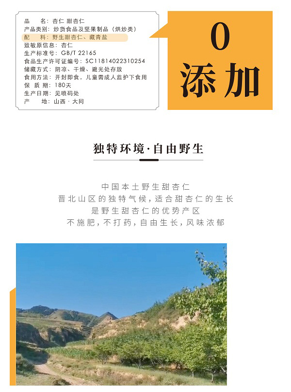 产地:山西大同(平人农场有山西灵丘、北京昌平两个基地, 杏林位于山西,因山西发货不方便, 因此杏仁北京发货)