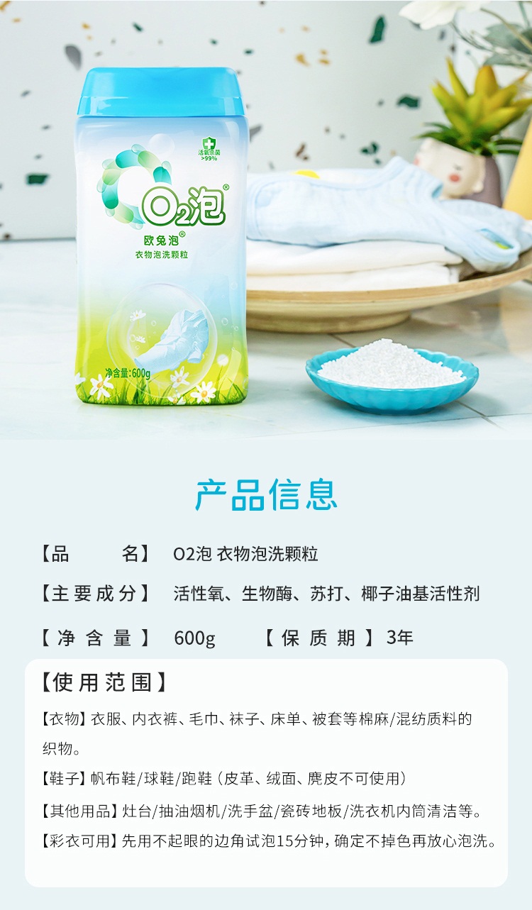欧兔衣物泡洗颗粒4盒(600g/盒*4盒,送母婴送600克补充装1袋)