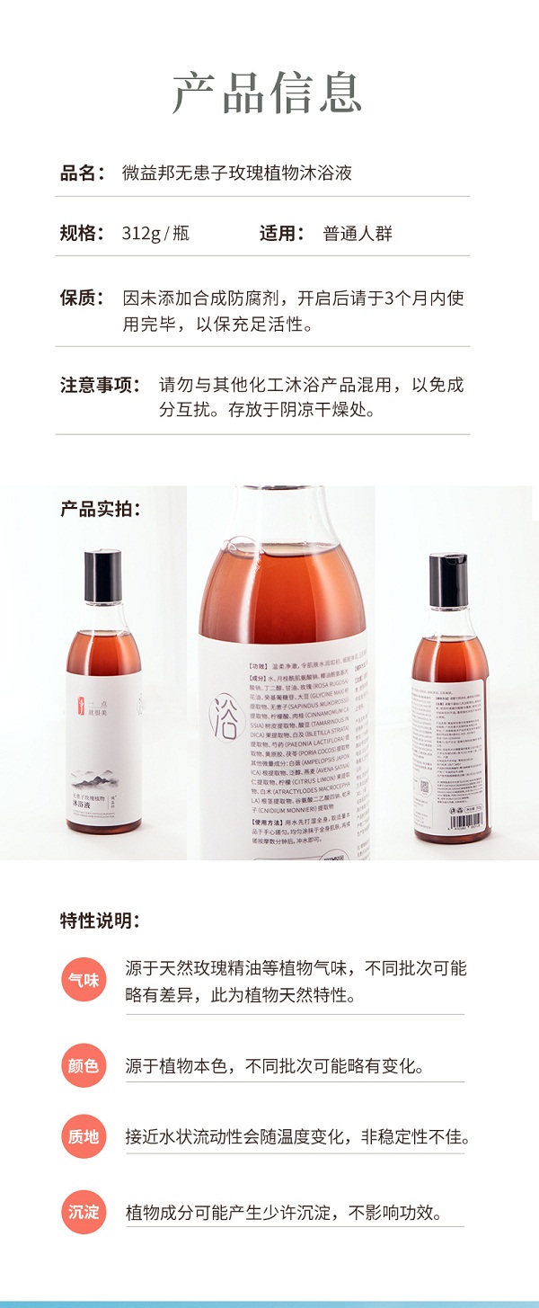 微益邦无患子玫瑰沐浴液3瓶(312克/瓶*3)