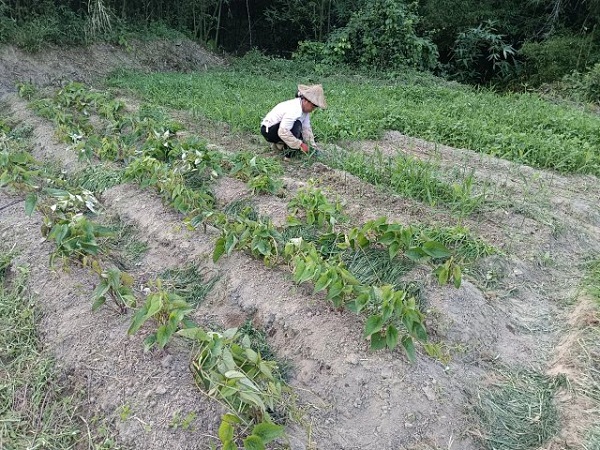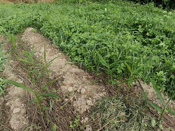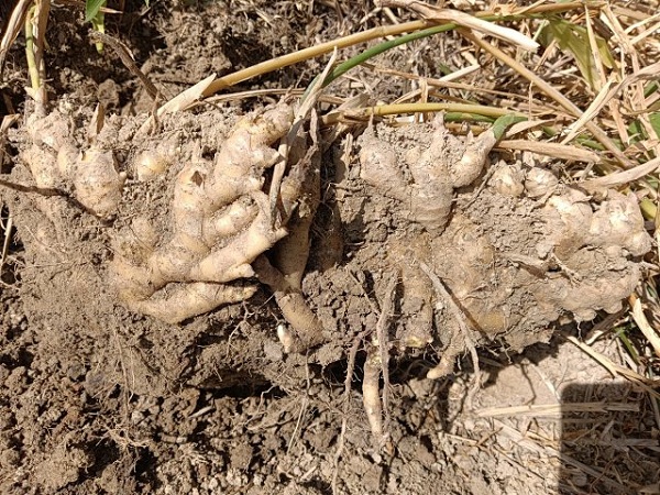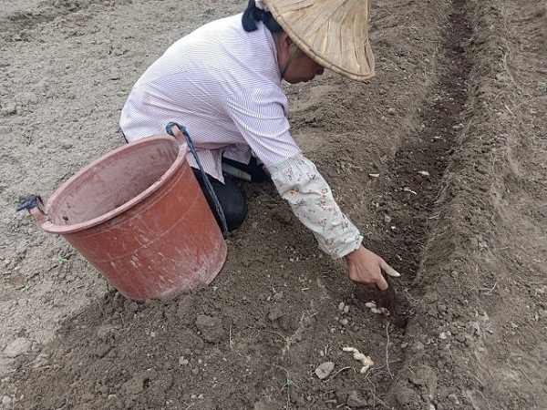 生长中期给小黄姜人手除草,培土覆盖,生长前后至少需要拔三次草。