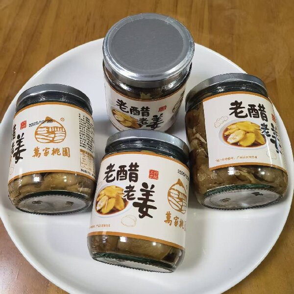 配料:桃118园自种老姜;古法酿造老黑醋;云南老冰糖;茶卡盐(冰糖降低辣度,盐为了改善口感,添加量都很少)