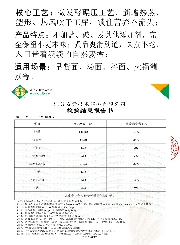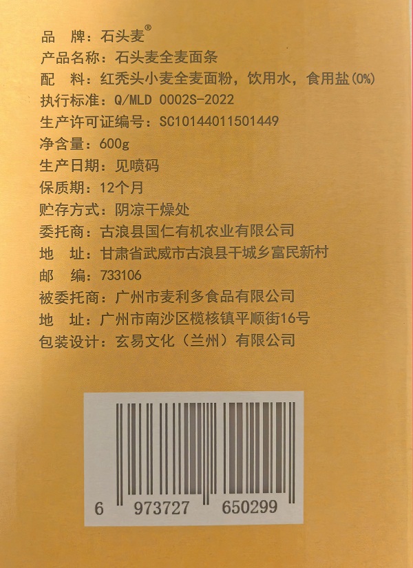 石头麦全麦面条8包(75g/包*8包,共600克)
