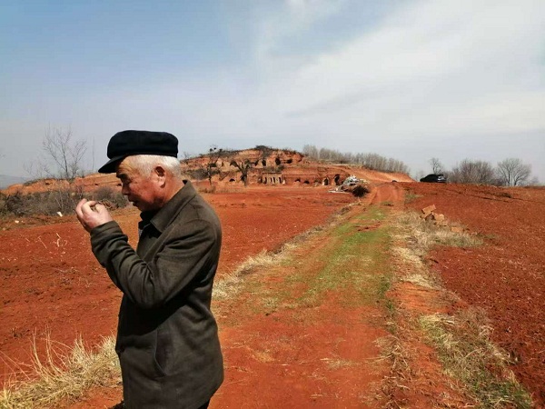在巍巍太行山上,在红色武乡大地上,有这么一片鲜红的土地,远看像鲜艳的红旗,把旗帜的鲜红色洒在了大地,近看却似绯红肉山,黑色的矿物质像人体毛细血管,布满整个山头,她就是武乡青龙垴。