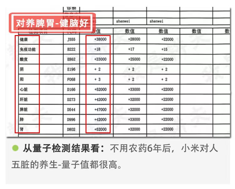不用农药的小米检测结果显示, 锌,钙,叶酸的含量都很高,并且还在逐年增高: