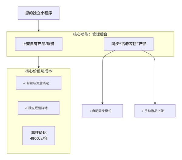 私域沉淀:用户和流量都沉淀在您自己的小程序中,有效锁定粉丝,实现独立经营。