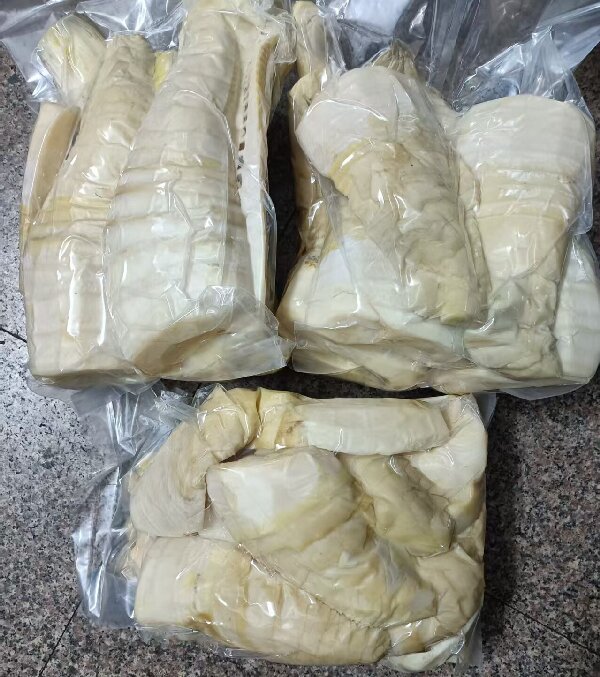 出土后马上去壳,搬运可以减轻60%的重量(10斤带壳春笋只能出4斤左右的笋肉)确保3小时下锅煮熟。
