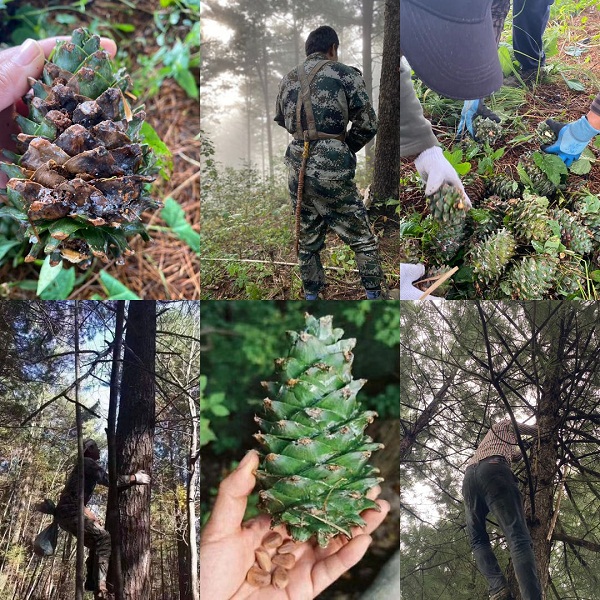 采摘回来的松塔,还得经过好几道工序才能变成松子