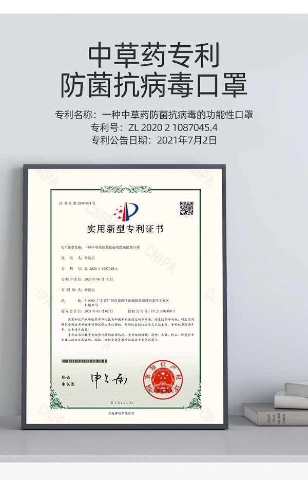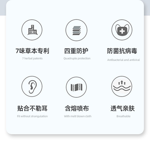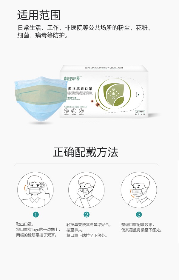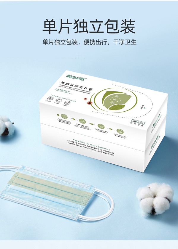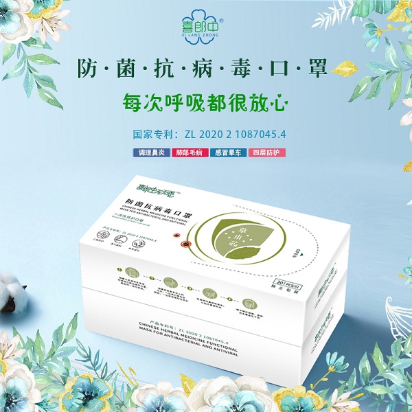 品名:喜郎中天天爱本草防菌抗病毒口罩8盒(20片/盒*8)
