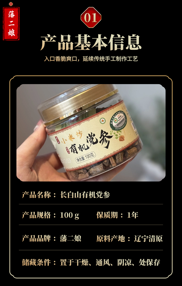 源自长白山生态产区的有机党参,自带自然芳香,是日常饮食的优质食材!