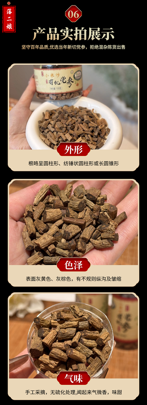 品名:东北长白山小米炒有机党参(党参头尾混合发货)